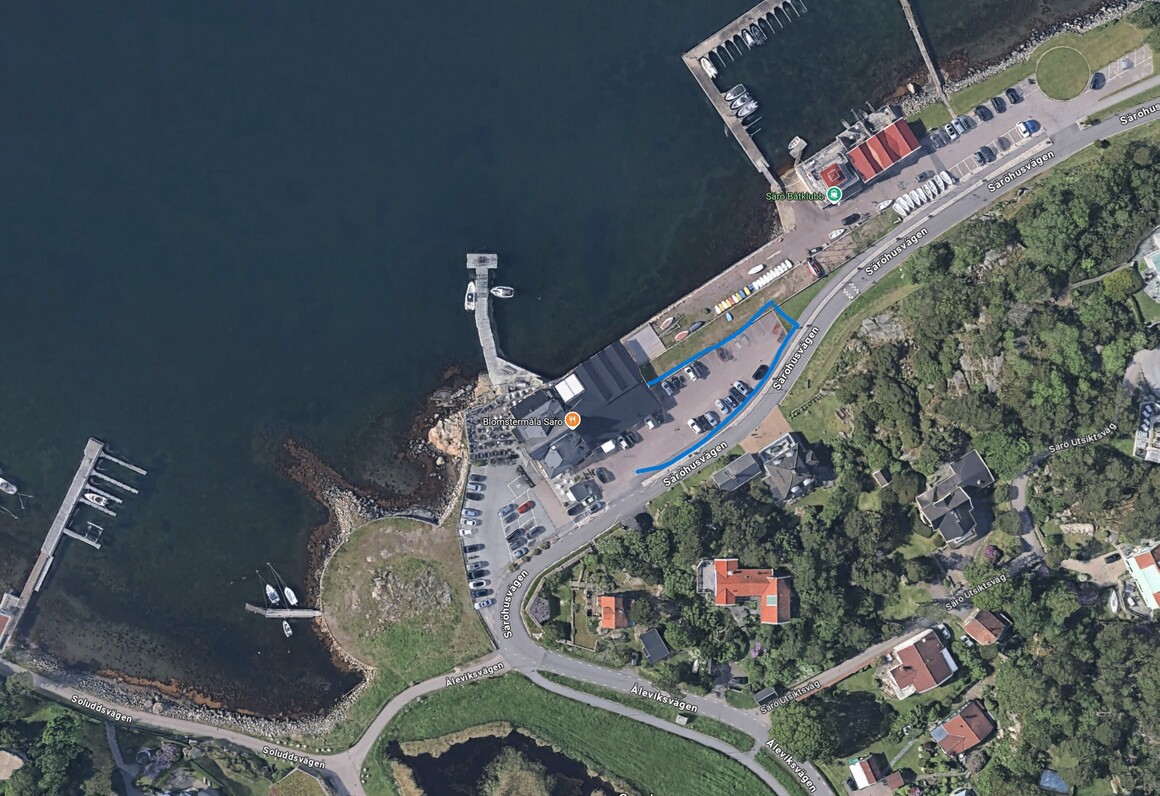 Vi kommer att parkera och ställa upp våra bilar inom den blå ytan, markerad i bilden nedan.